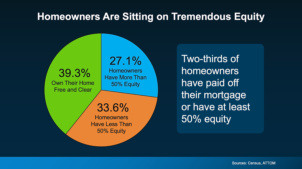 39% own their home outright without owing anything on it. And another 27% have at least 50% equity in their homes (see chart below):